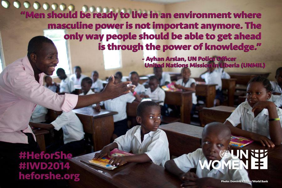 Lisäksi tasavallan presidentti Sauli Niinistö on yksi kymmenestä valtion päämiehestä, jotka ovat sitoutuneet edistämään tasa-arvoa UN Womenin kansainvälisen HeForShe–kampanjan Impact Champion -lähettiläänä. Kampanja peräänkuuluttaa, ettei sukupuolten tasa-arvoa saavuteta, elleivät myös miehet ole mukana sitä edistämässä.